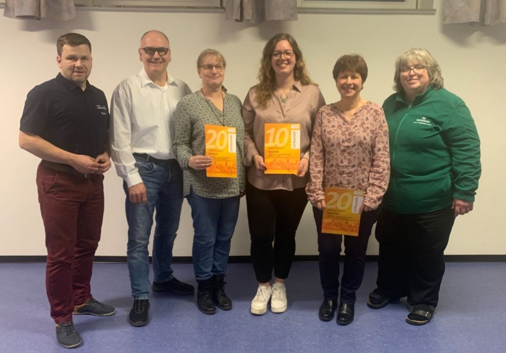 40 Jahre (Goldene Ehrennadel): Heike Brandt, Tobias Grote, Kai Hoffmann, Marita Hoffmann, Christian Marhenke, Sven Meier, Gabriele Nendel, Lena Sacher